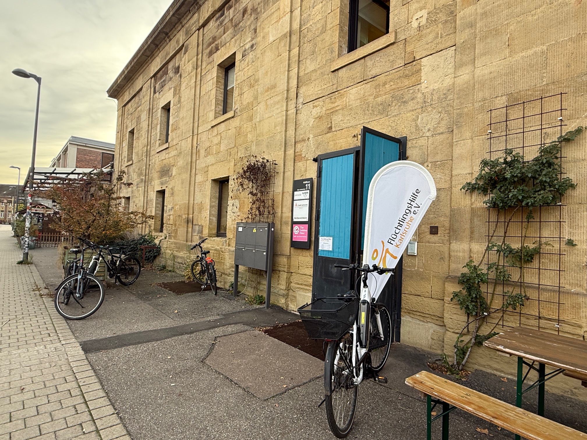 Seit Mitte 2024 residiert die Flüchtlingshilfe am Alten Schlachthof 11 – im sog. ehemaligen Kühlhaus. Zuerst als Untermieter und nun zum 1.1.2026 als Hauptmieter. Wir freuen uns sehr über die tollen Räumlichkeiten und die Fortführung unserer Arbeit auf dem Alten Schlachthof, einem Areal, das uns seit unserer Gründung in 2014 beherbergt.